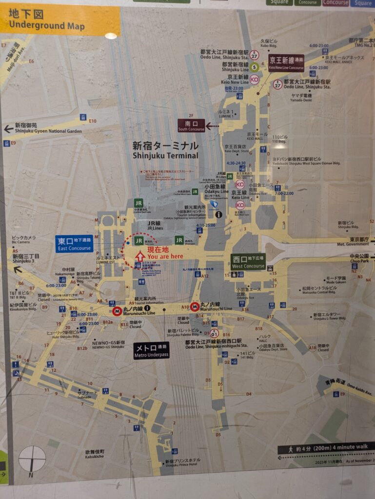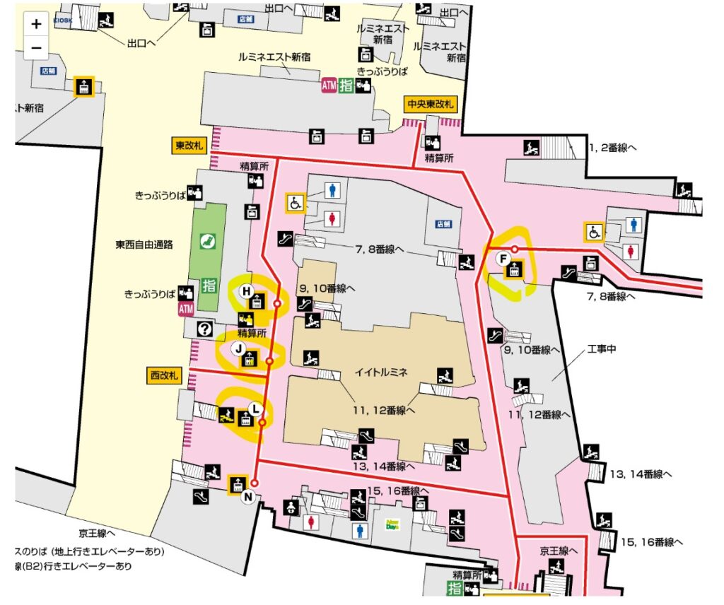 新宿駅の乗り換えは基本的に地下で完結しますが、目的地によっては地上に出る必要があります。