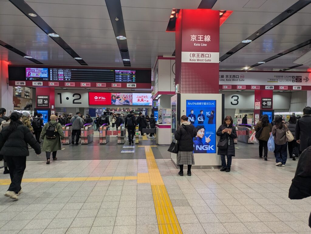 新宿駅の乗り換えでは、JRの改札を出て、都営・京王線の改札に入るという動作が必要です。