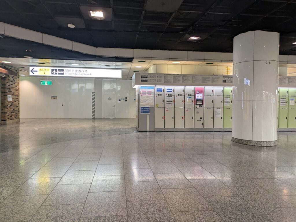 - JR西改札付近:大型サイズのコインロッカーが比較的空いている