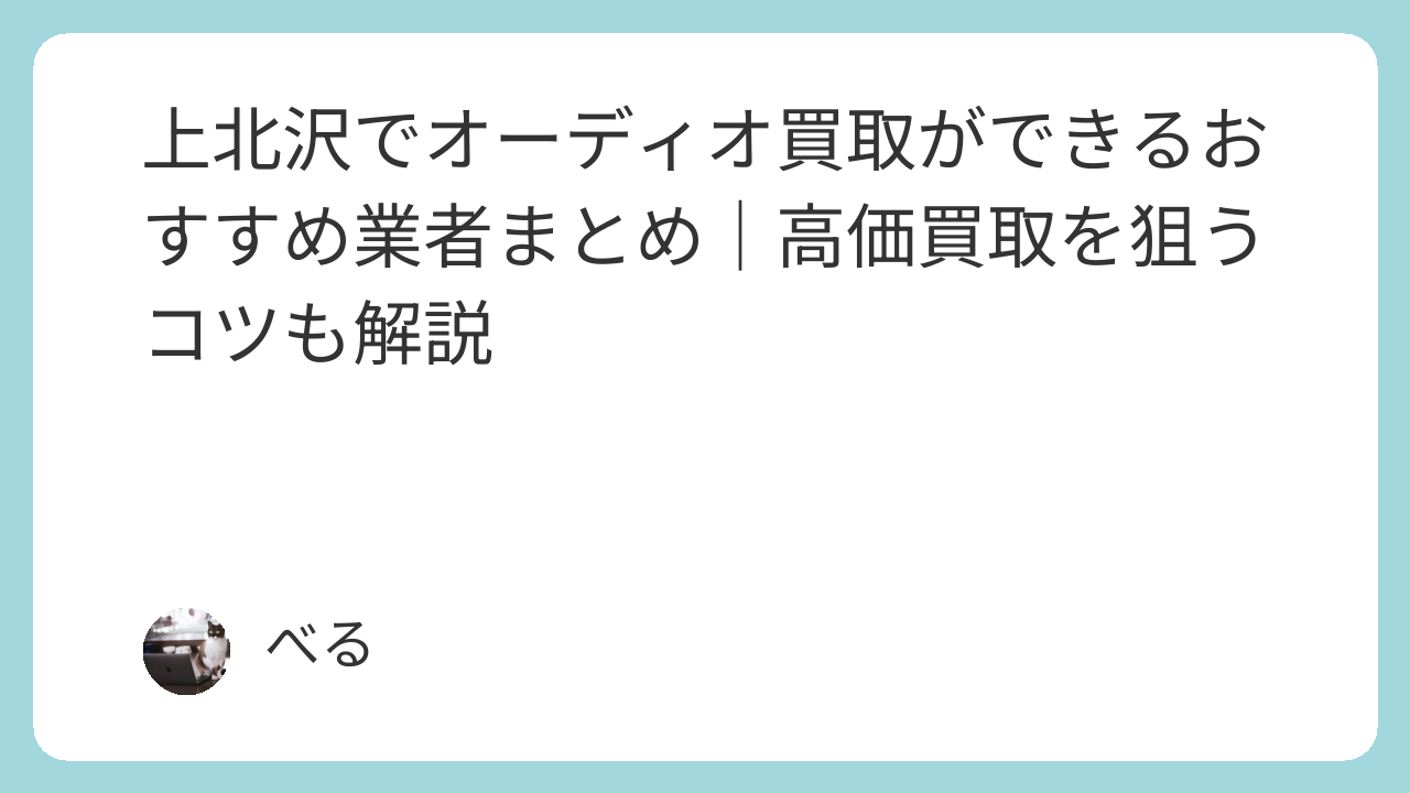 上北沢エリアでアンプ、スピーカー、CDプレーヤー、レコードプレーヤーなどのオーディオ機器を売却したい方向けに、店頭買取や出張買取、宅配買取に対応している業者をまとめました。